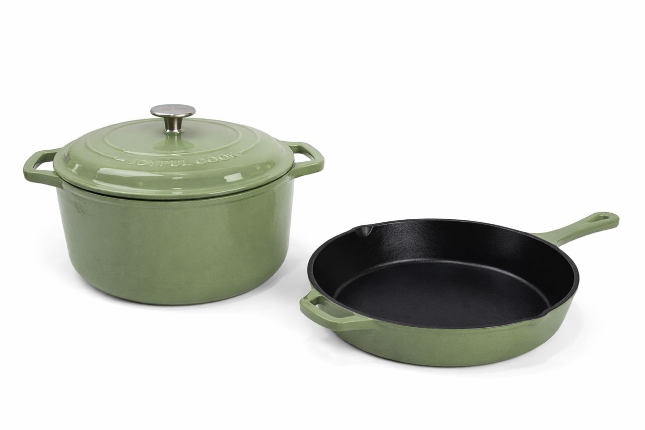 Elite Green Cast Iron Cook & Fry Set (2-Piece)