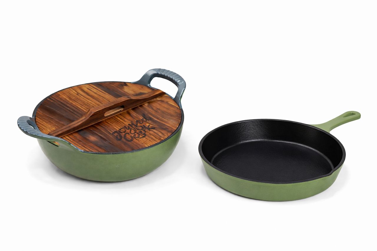 Cook with confidence and versatility using the Elite Green Cast Iron Fry & Wok Set (2-Piece). This dynamic combination brings together two essential cookware pieces designed for high-heat cooking and fast, flavorful meals.