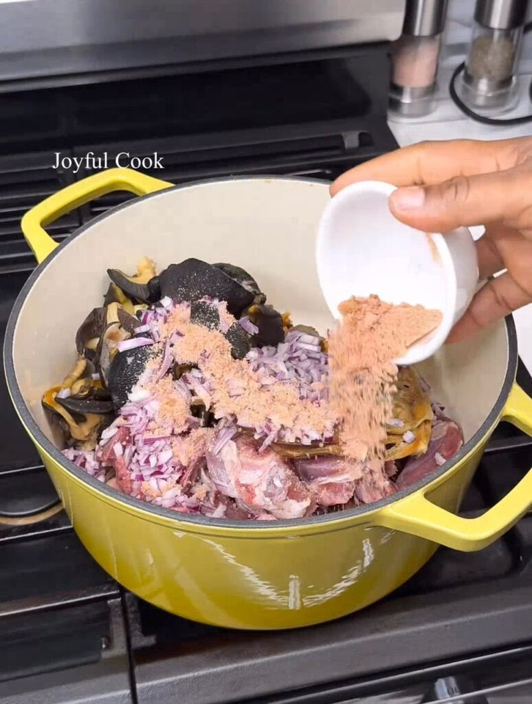 What makes this soup special isn’t just the ingredients, but the beautiful blend of native leaves that give it that signature dark color and deep, earthy flavor. Traditionally, it’s made with fresh blended leaves, but don’t worry—this version shows you how to recreate that same magic using dried leaves (perfect if you’re outside Nigeria or don’t have access to fresh ones).