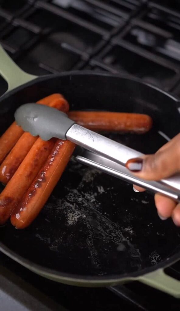 • 3–4 hot dogs or sausages, toasted