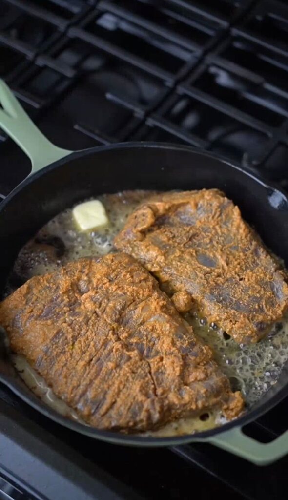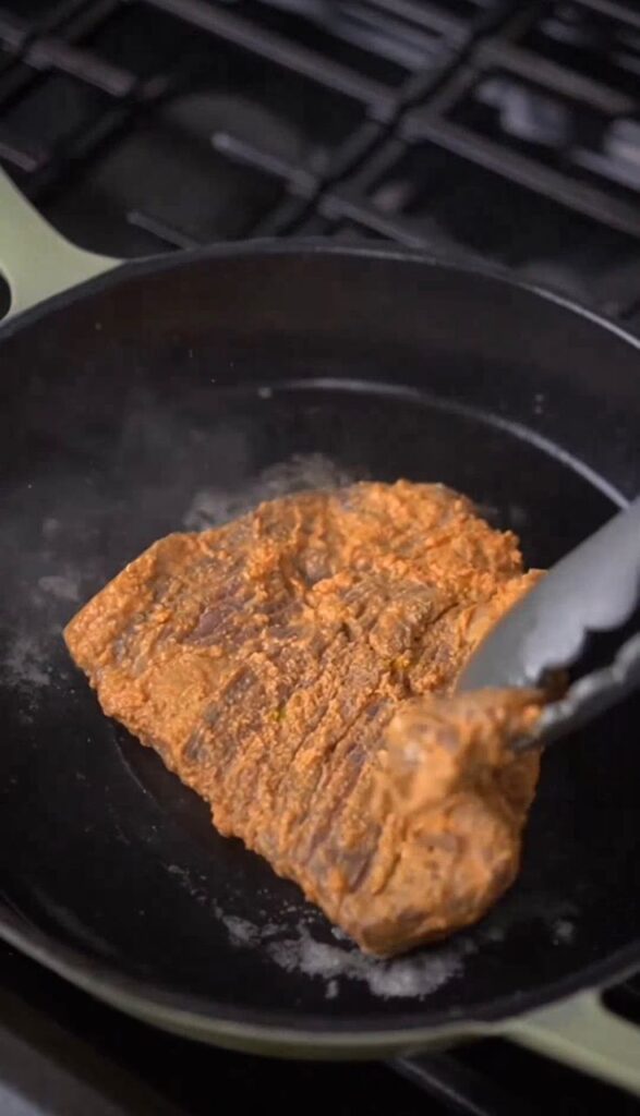 5. Cook marinated beef on medium-high heat for 3–4 minutes per side depending on thickness.