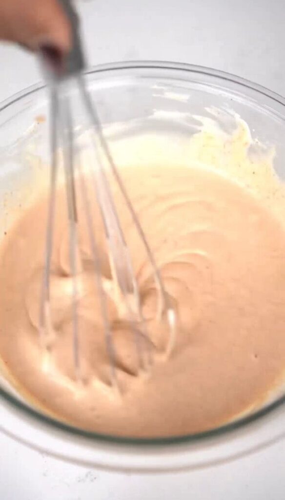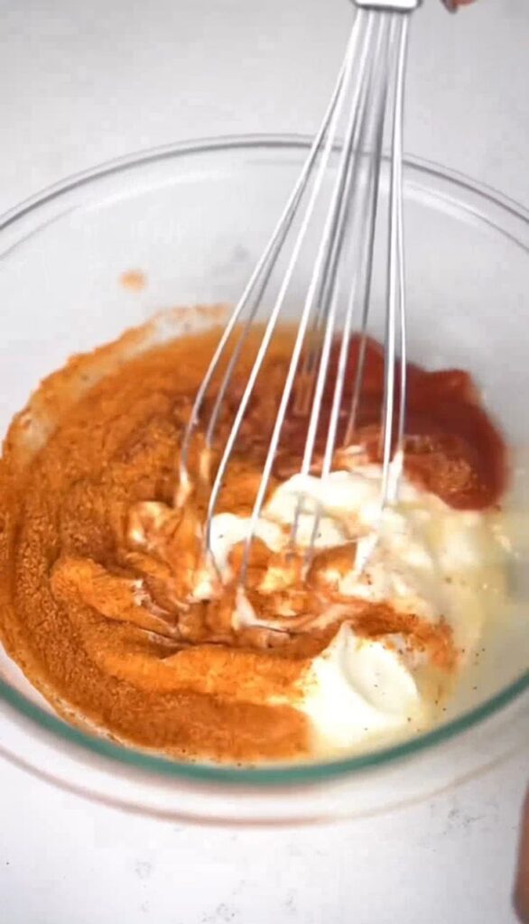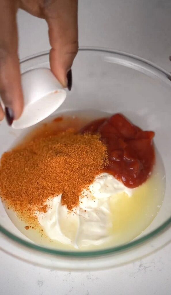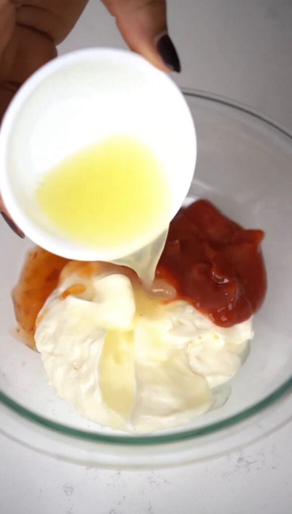 7. In a bowl, mix mayonnaise, ketchup, sweet chili sauce, lemon juice, and suya spice.