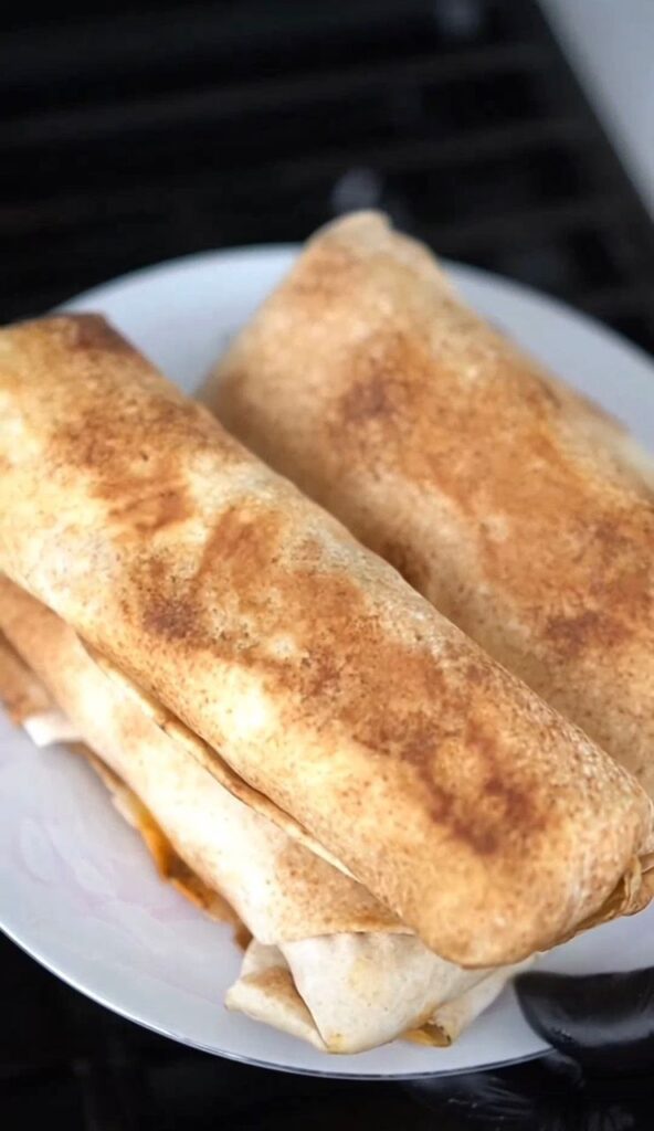 12. Place wrapped shawarma on a hot pan for a few minutes, turning to lightly toast and seal the ends.