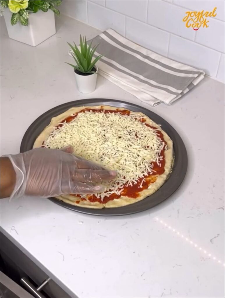 Spread the cooled pizza sauce evenly over the dough. Don’t overload it, pizza sauce should complement, not overpower.