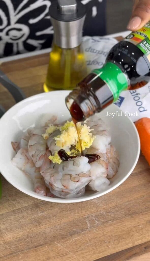 - In a bowl, mix shrimp with garlic, ginger, onion powder, and oyster sauce