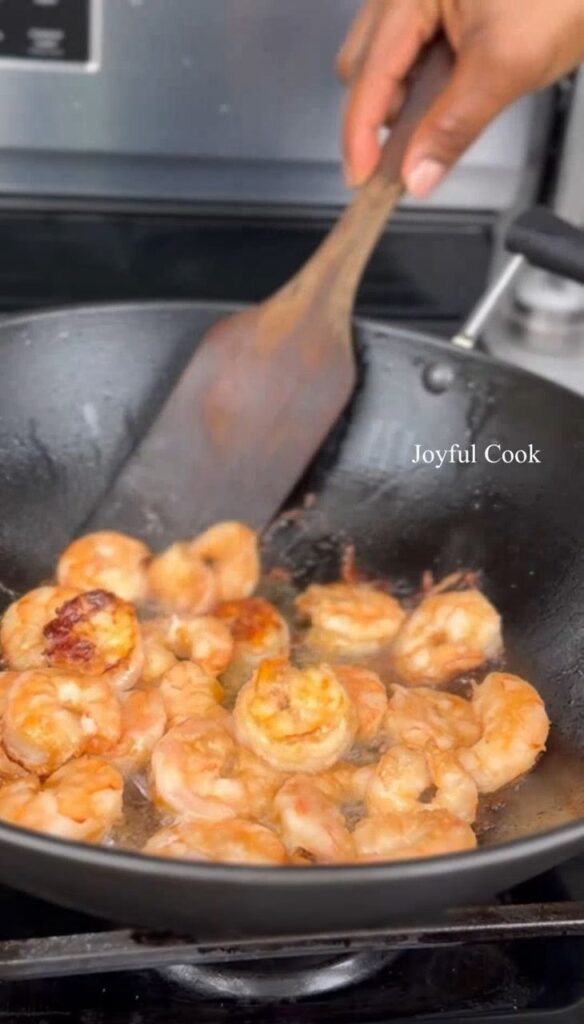 - Heat oil in a pan and fry shrimp for 1 minute per side